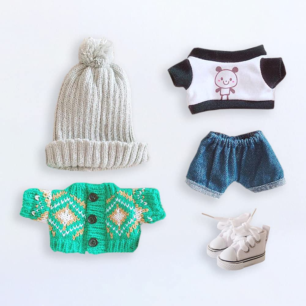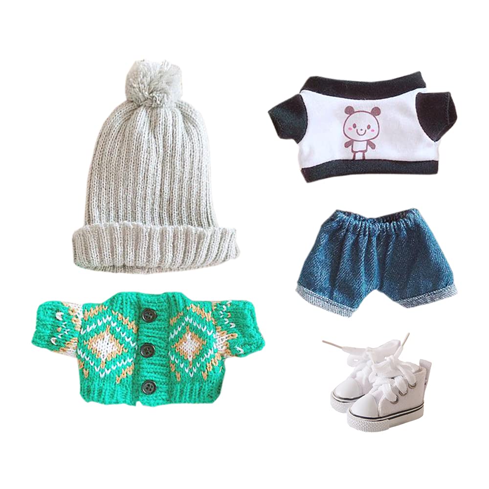 Niannyyhouse 20 см Кукольная одежда Хлопковая кукольная одежда Шляпа Куртка Шорты Обувь Комплект из 5 предметов Одежда для панды Ретро свитер Кардиган Кукольная детская одежда Наряды
