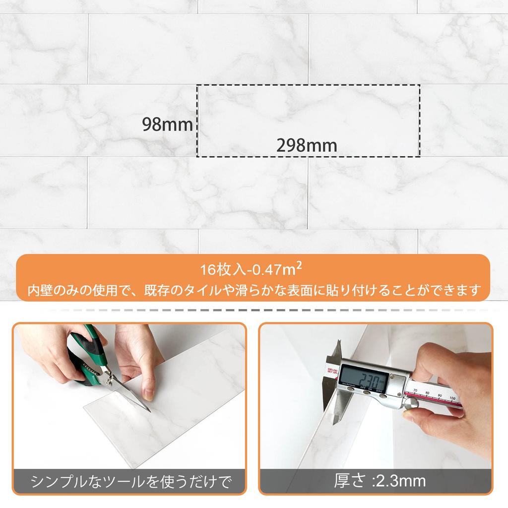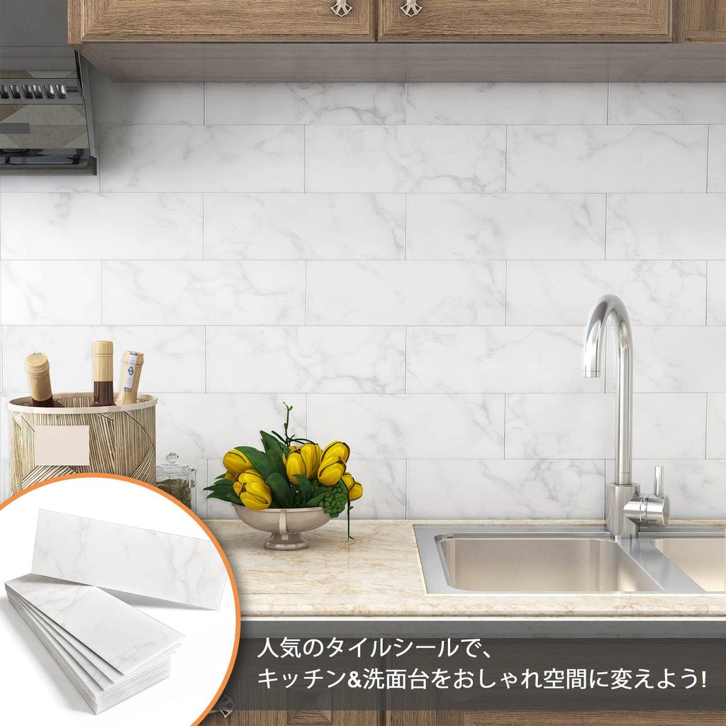 VAOVI Мраморная плитка Наклейка Кухонная брезентовая настенная плитка DIY Кухонная панель Ванная комната DIY 98x298 мм штуки Каррара (16 Белый)
