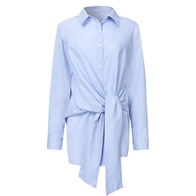 Элегантные блузки с длинным рукавом, повседневные хлопковые офисные рубашки, белые женские топы на пуговицах, со шнуровкой, однотонные блузки для женщин, женская одежда 18659