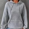 Повседневная толстовка больших размеров, женская однотонная толстовка с капюшоном и завязками с длинными рукавами и вафельным узором, с карманами