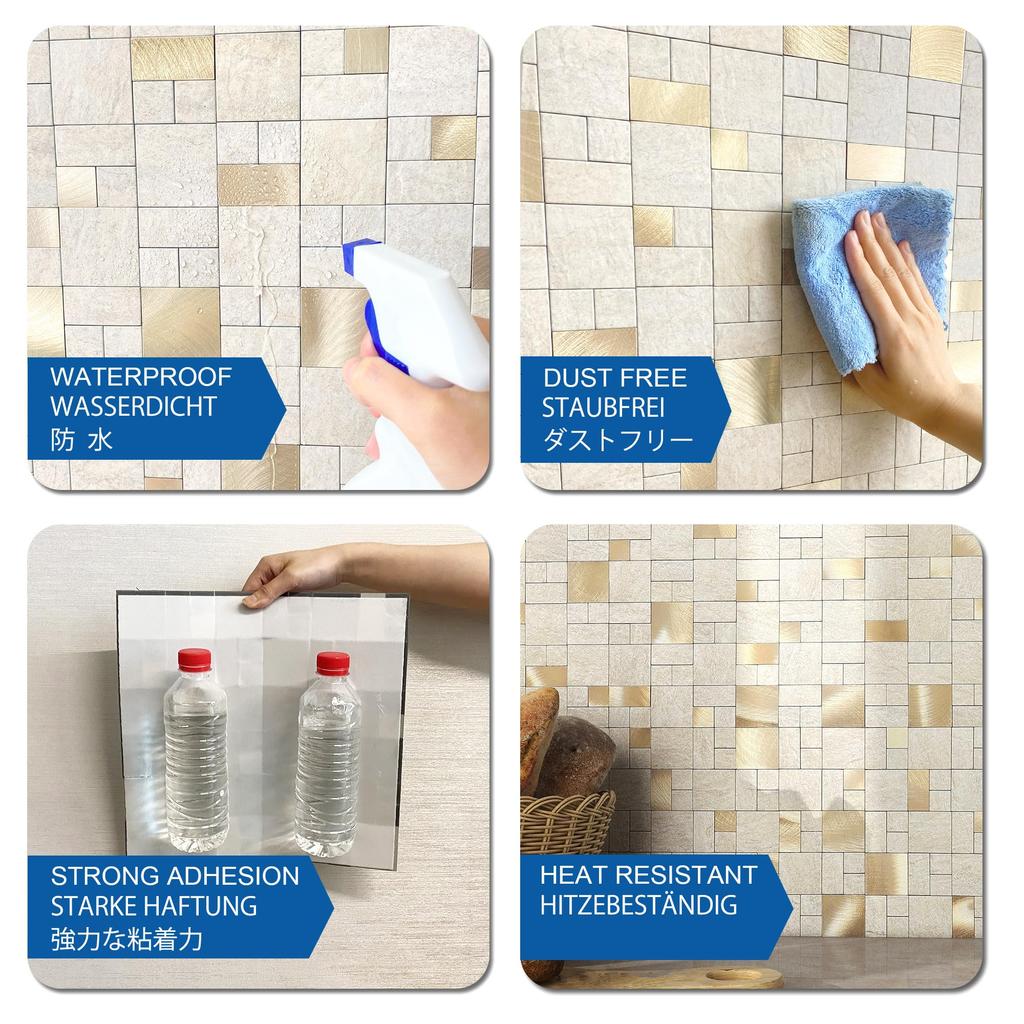 Легко поддерживать в порядке Термостойкий лист Кухня: Водонепроницаемый, термостойкий, маслостойкий. Многие используют его для задних крыльев кухонь, стен паровых бань, ванных комнат, спален, автомобилей и т. д.. Легко протирать, удаляя пятна и защищая стены от брызг и масляных пятен.. Срок службы больше