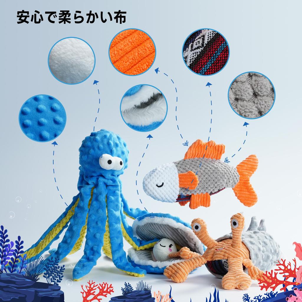 Игрушки для собак Nocciola Sea Theme с плюшевыми игрушками для маленьких, средних и больших домашних животных, набор игрушек для жевания, снятия стресса и скуки. Звуки, Собаки, Собаки,