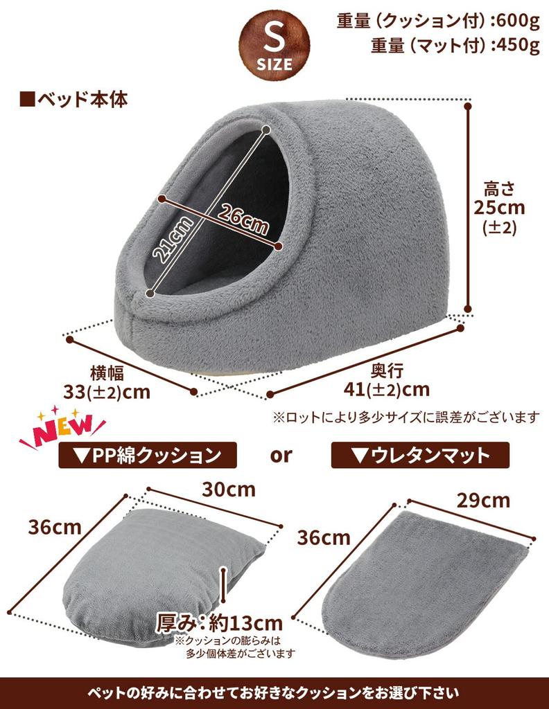 [Размер/Вес] Размер S: (Постель) 41 х 25 х 33 см (матовый) 35 x 29 x 2 см / Вес 450 г, размер M: (Постель) 48 х 31 х 40 см (матовый) 44 x 34 x 2 см / Вес 650 г, размер L: (Постель) 54 х 35 х 46 см (матовый) 52 x 41 x 2 см / Вес 840 г [Материалы] Полиэстер, основная часть уретан (155N высокая упругость/плотность 33D), матовый уретан (192N высокая упругость/плотность 25D) [Рекомендуемый размер для домашних животных] Размер S — красный. Кошки и щенки. Размер M — для кошек и мелких собак старше 1 года и весом менее 2–4 кг. (Размер L предназначен для кошек и мелких собак старше 1 года и весом более 4 кг.. [Тип] Вы можете выбрать тип коврика или подушки.