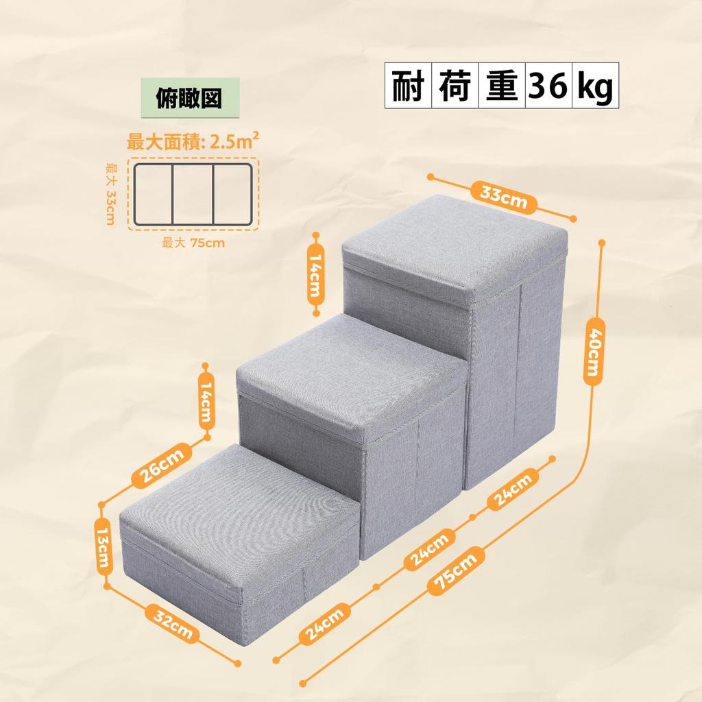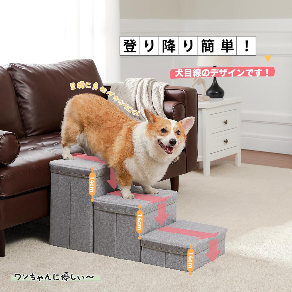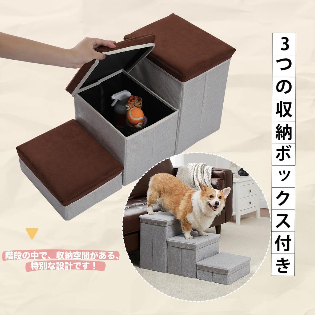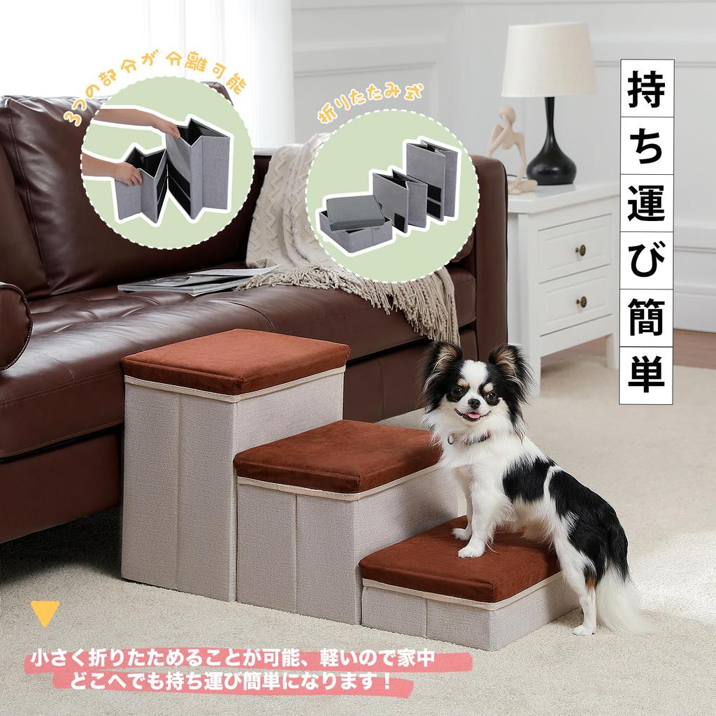 PAWZ Road Dog Dog 3 с местом для хранения, ступенька для питомца, пожилая собака, уход за больными, высота, коричневый помпон, кровать для кошек, ступенька, лестница, ярусы, хранение, разделяемая, коробка,