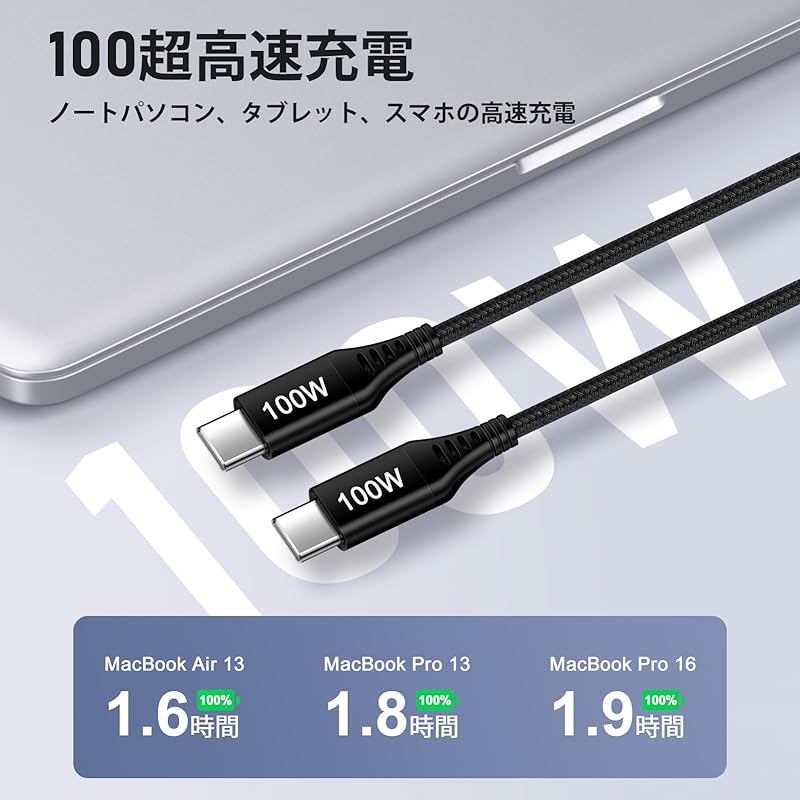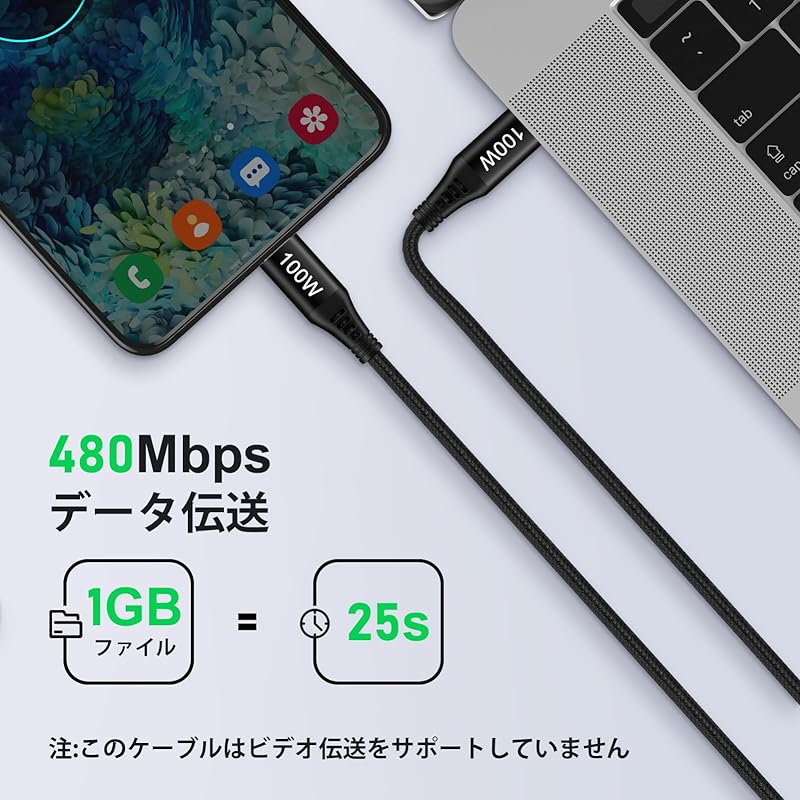 [Совместимость с PD до 100 Вт/зарядка в 4 раза быстрее] Кабель USB-C поддерживает «USB PD (Доставка энергии)", поэтому он может быстро заряжать до 100 Вт. Вы можете значительно сократить время зарядки не только смартфонов, но и различных планшетов, ноутбуков и т. д.. что вы хотите сократить время зарядки. Например, при использовании зарядного устройства, совместимого с PD3.0, MacBook Pro 16 можно полностью зарядить всего за 1,9 часа. Он также поддерживает скорость передачи данных до 480 Мбит/с. Примечание: ①. Для достижения быстрой зарядки PD устройство и зарядное устройство должны поддерживать функцию PD.② Видеовыход не поддерживается.