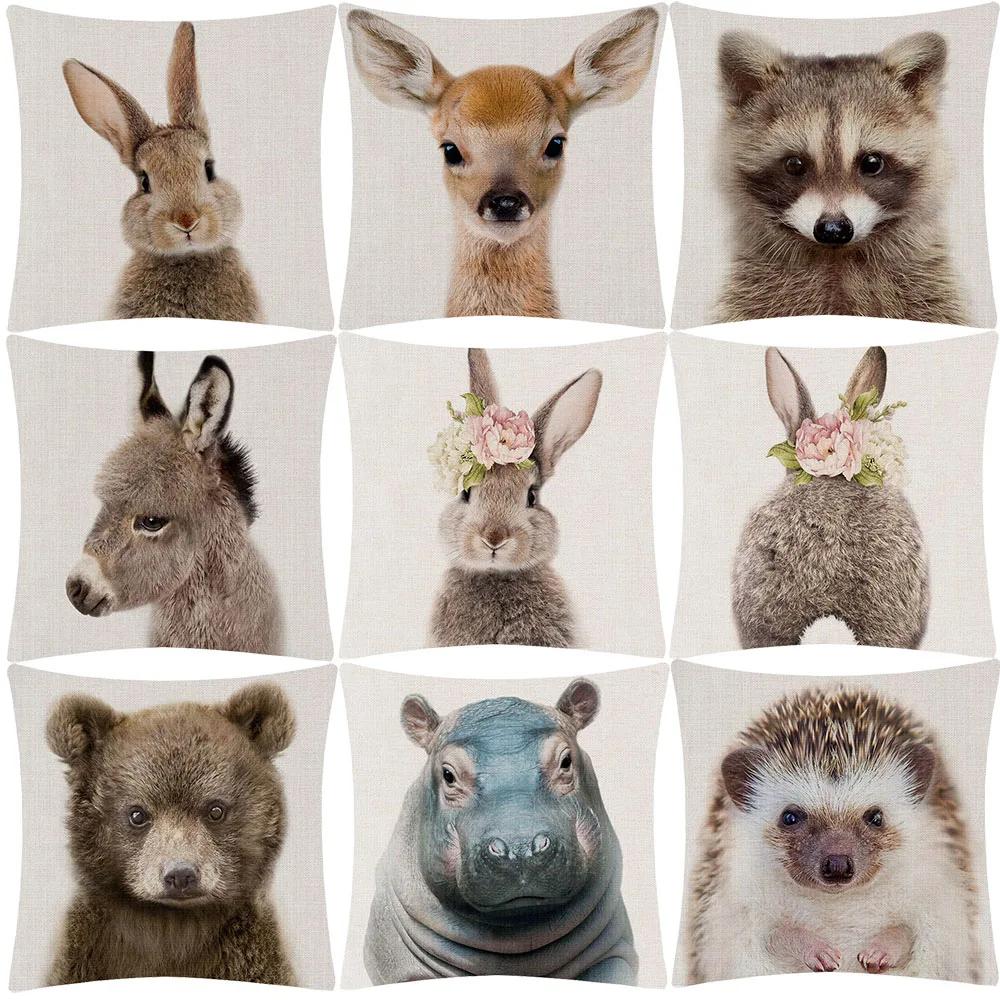 Кролик Ослик Лиса Олень Ежик Медведь Петух Утка Бегемот Животные Плакаты Чехол для подушки Декоративные подушки для дивана Домашний декор