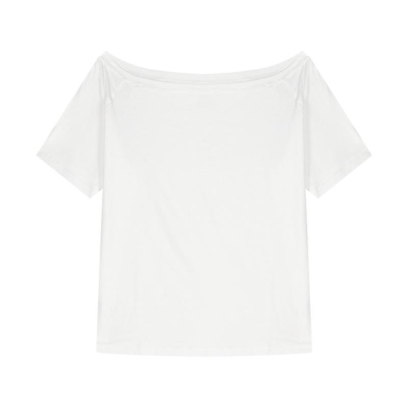 Футболка свободного кроя с короткими рукавами и разрезом на плече, женская летняя новая повседневная однотонная универсальная футболка