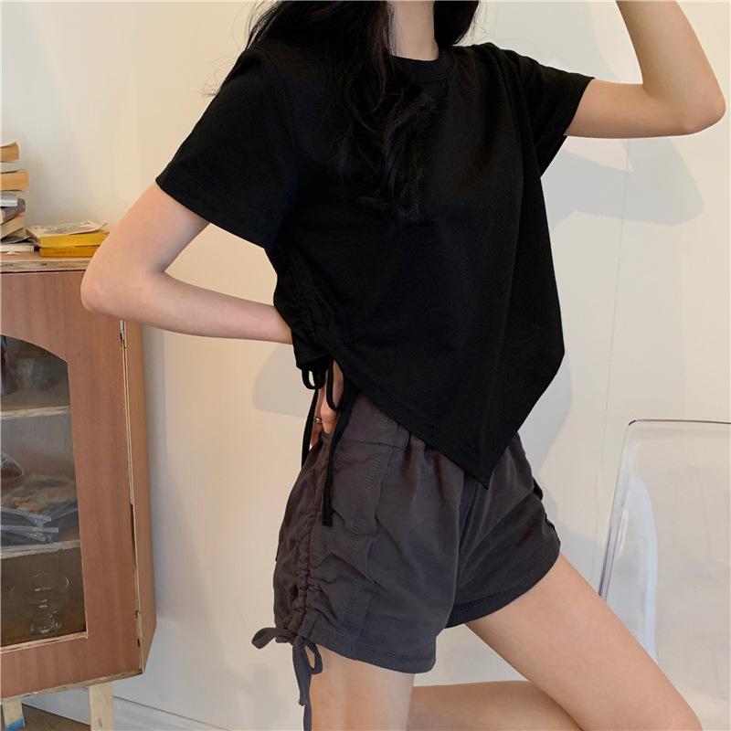 Нерегулярная короткая футболка с короткими рукавами и завязками, женская новая летняя корейская версия, универсальный студенческий топ Spice