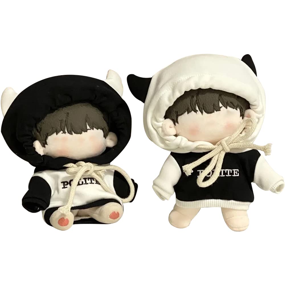 YUYAKESHI хлопковая кукла, переодевание для 20 см, мягкая свободная кукла с капюшоном, милая плюшевая кукла из 2 предметов, шапка, белая одежда, одежда, животные, толстовка с капюшоном, корова,