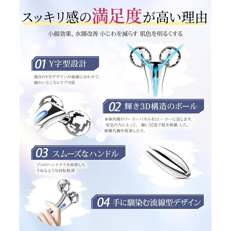 🤩 [Многофункциональный ролик для лица/3D-уход за маленьким лицом] Этот Y-образный 3D-роллер для лица идеально подходит для ухода за всем телом, от лица до тела. Технология микротоков использует слабые токи, чтобы ваша кожа выглядела более чистой, а лицо визуально уменьшалось. Дизайн унисекс, подходит как мужчинам, так и женщинам. Вы можете с легкостью наслаждаться особым уходом каждый день. *Этот ролик для лица — это косметическое устройство, а не медицинский прибор.
