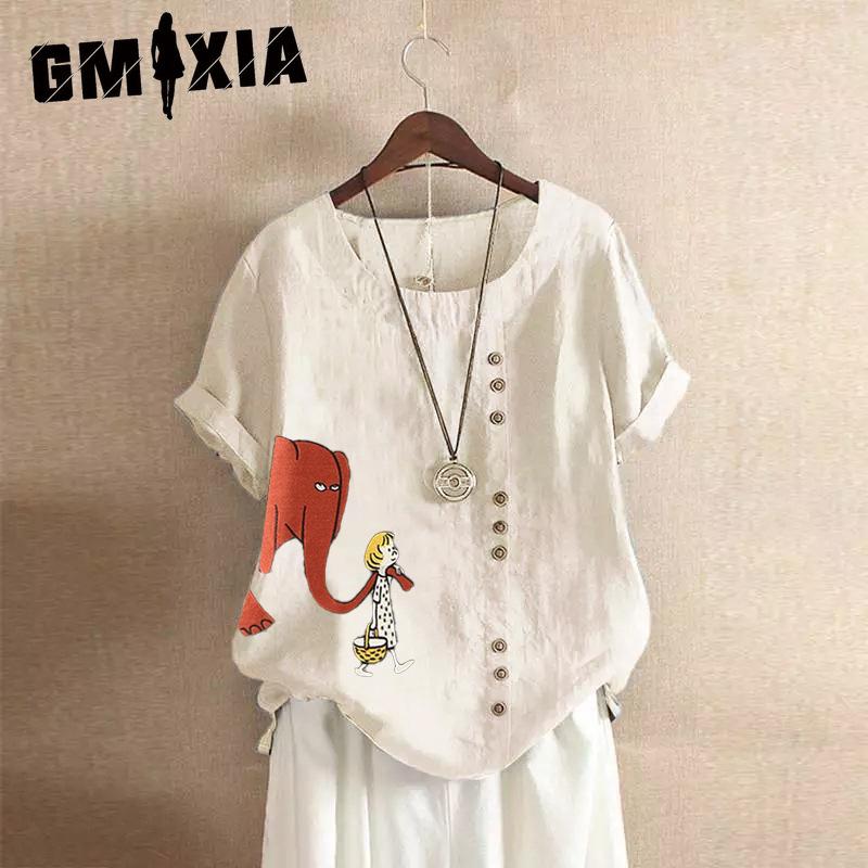 GMXIA Летняя винтажная футболка больших размеров из хлопка и льна с коротким рукавом, повседневная свободная футболка из хлопка и льна для женщин, женская одежда больших размеров — купить товар онлайн с бесплатной доставкой по всему миру!
