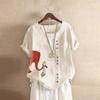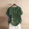 GMXIA Летняя винтажная футболка больших размеров из хлопка и льна с коротким рукавом, повседневная свободная футболка из хлопка и льна для женщин, женская одежда больших размеров
