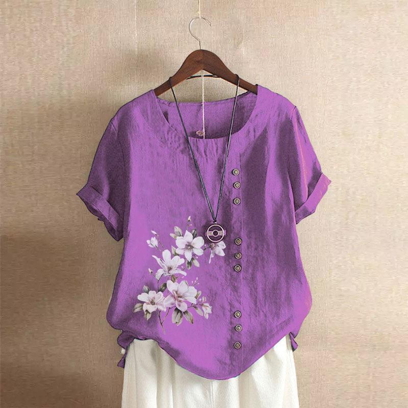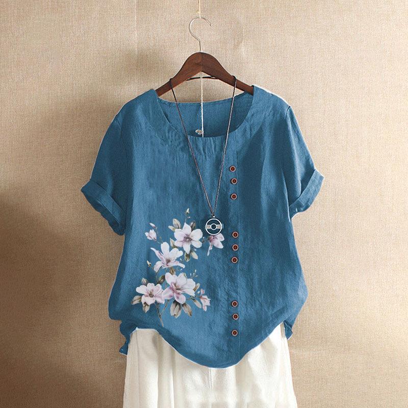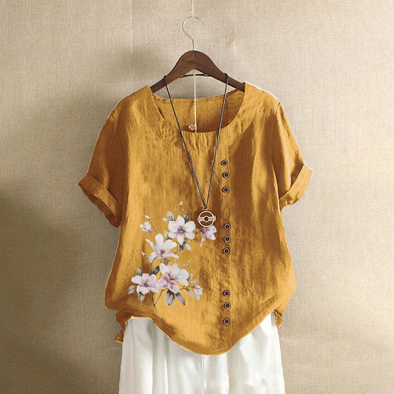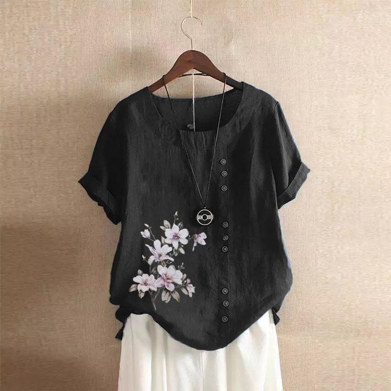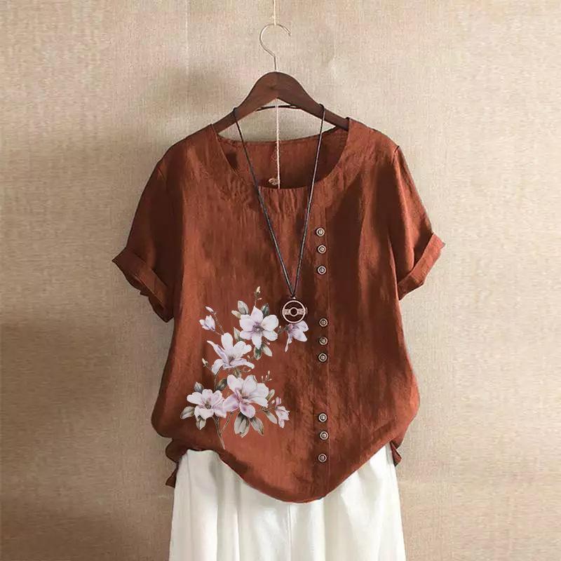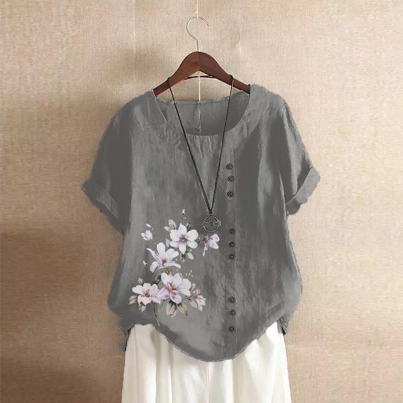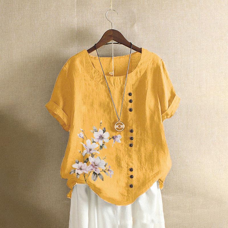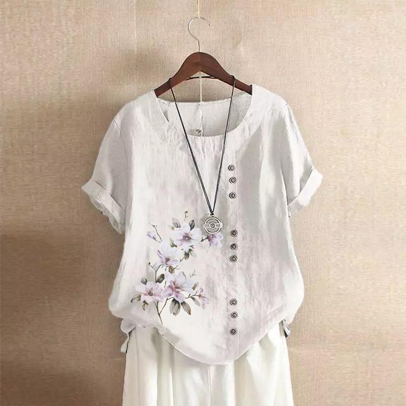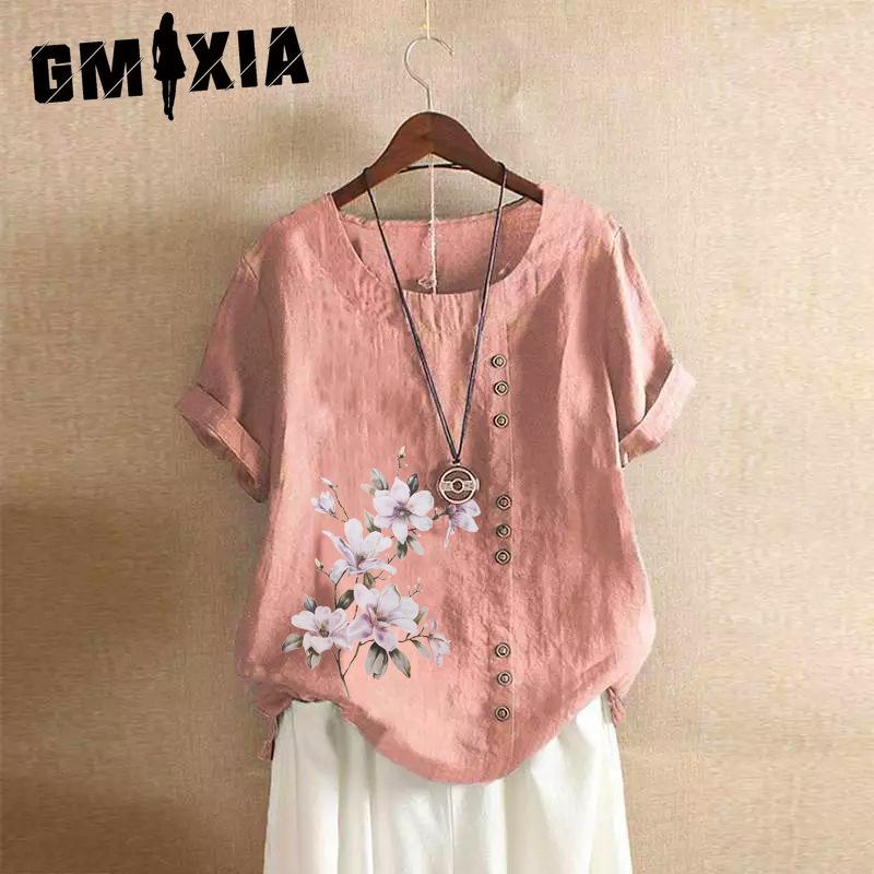 GMXIA Футболка женская летняя и осенняя из хлопка и льна в стиле ретро свободного покроя с коротким рукавом из хлопка и льна большого размера для женщин