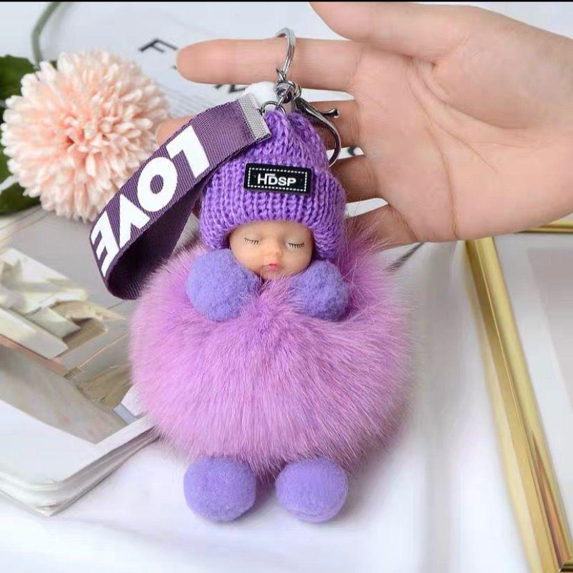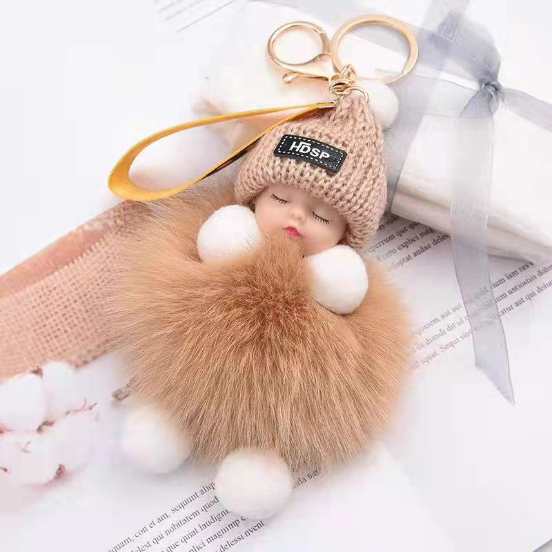 Высококачественный брелок для ключей из натурального меха лисы с подвеской в виде спящей куклы, плюшевое украшение для сумок и машин, брелки для сумок
