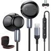 Magnetic storage design: Our Type-C earphones adopt a unique magnetic design, and unlike traditional wired earphones, the left and right earphone parts stick together with magnets, so you can remove the earphones from your ears and stick together, and just hang them around your neck and the earphones will not get tangled.It's unsightly and is very convenient when carrying.Earphones weigh only 10g (excluding cables) for both ears, making them lightweight and comfortable to wear without putting strain on your ears.