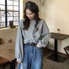 Короткая толстовка для женщин, свободная корейская новая осенняя тонкая с длинным рукавом и открытым пупком