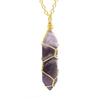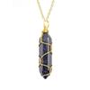 Blue sand Wire Wrap Stone Pendant Natural Stone Rose Quartz Hexagonal Cylindrical Crystal Necklace