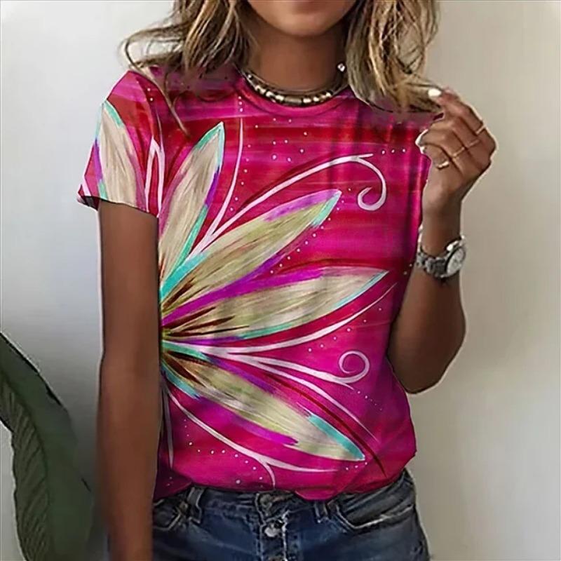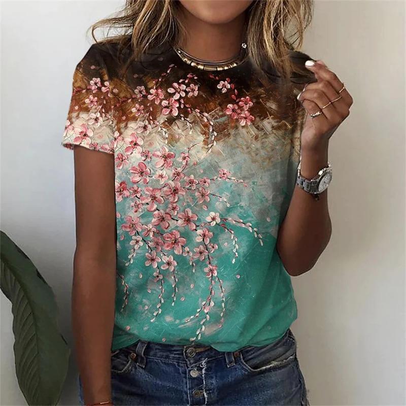 Женская футболка с принтом 3D-цветов, короткий топ, женская внешняя одежда, повседневная женская модная уличная футболка, летняя мода, новинка