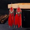 Этнический стиль длинные серьги с перьями и бахромой красные женские модные ретро-серьги в национальном стиле праздничные фотоукрашения