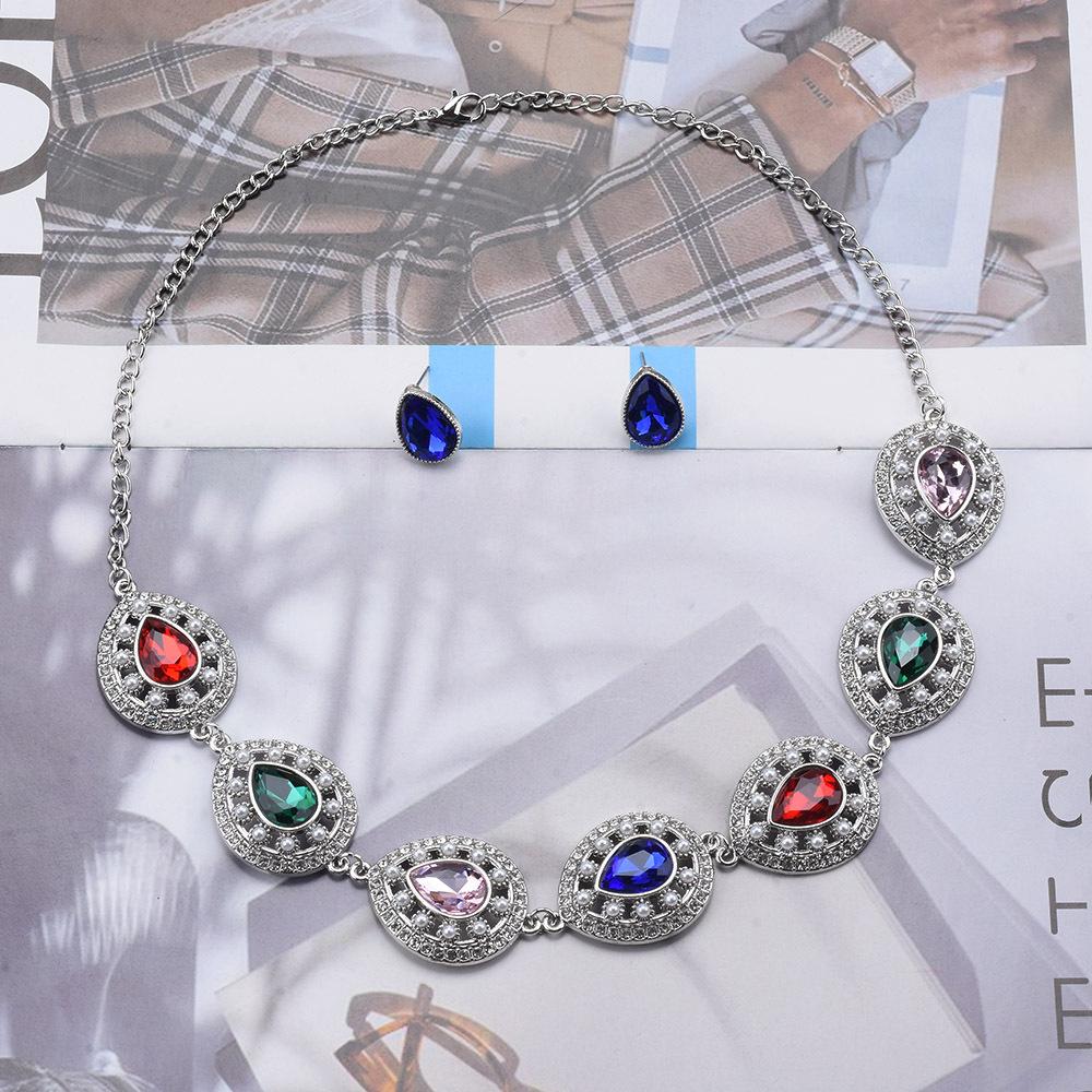 Комплект украшений из жемчуга с бриллиантами преувеличенного цвета, роскошное ужинное ожерелье со стразами, серьги-капли