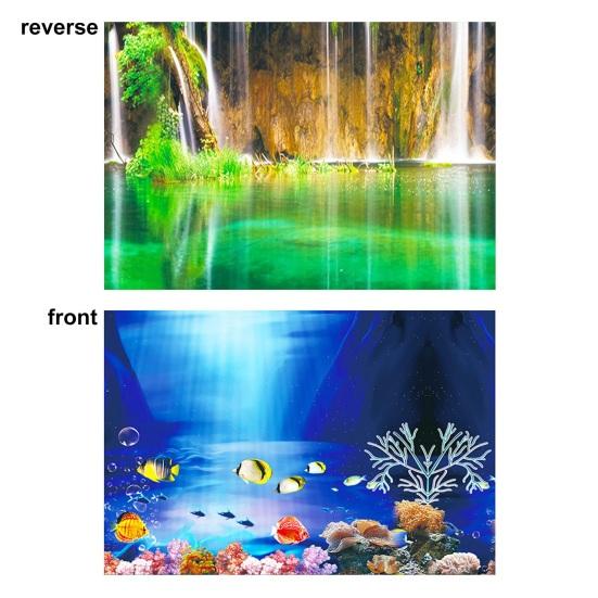 Имея две стороны с разными красивыми пейзажами, вы можете наслаждаться двумя стилями и легко менять их по своему усмотрению.. Реалистичный дизайн создает завораживающий эффект, делая ваш аквариум похожим на настоящий подводный рай..