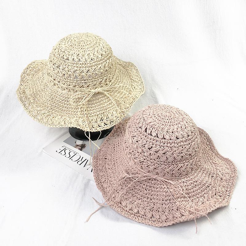 Соломенная шляпа ручной работы Dongdaemun, связанная крючком, солнцезащитная шляпа для женщин, летняя складная шляпа для бассейна, пляжная шляпа для рыбалки