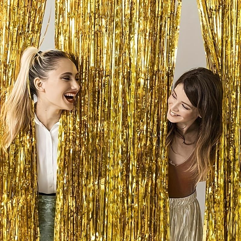 Комплект из двух занавесок с золотыми кисточками, пластиковый фон для вечеринок размером 78,74x39,37 дюймов, подходит для дней рождения, годовщин, свадеб и помолвок.