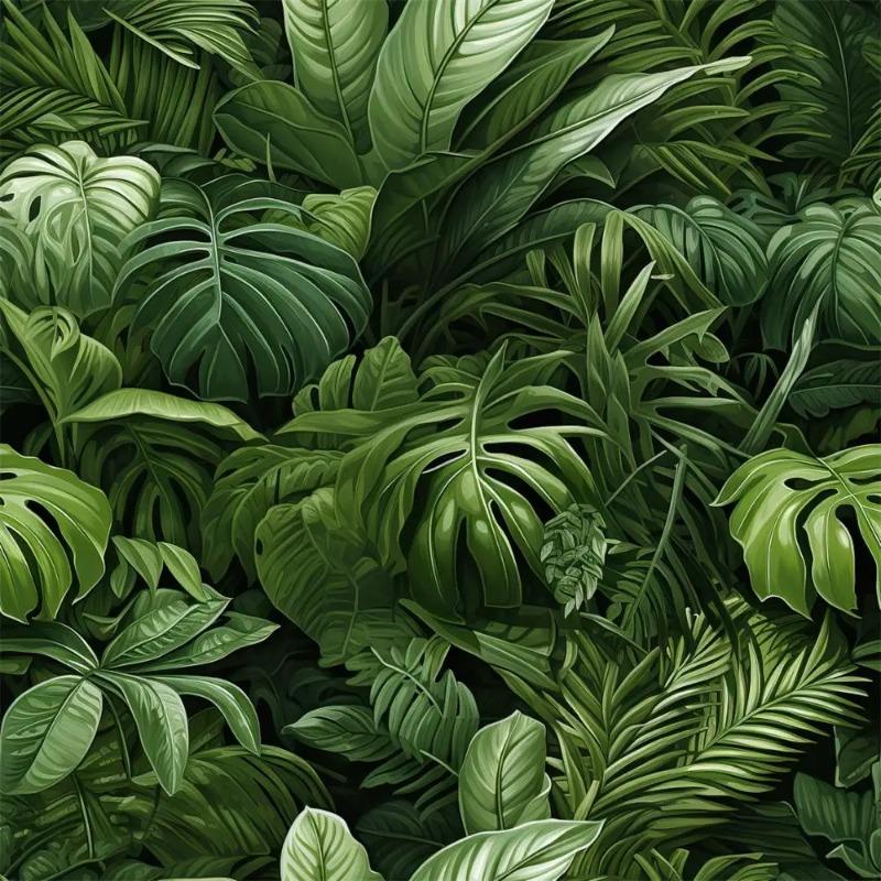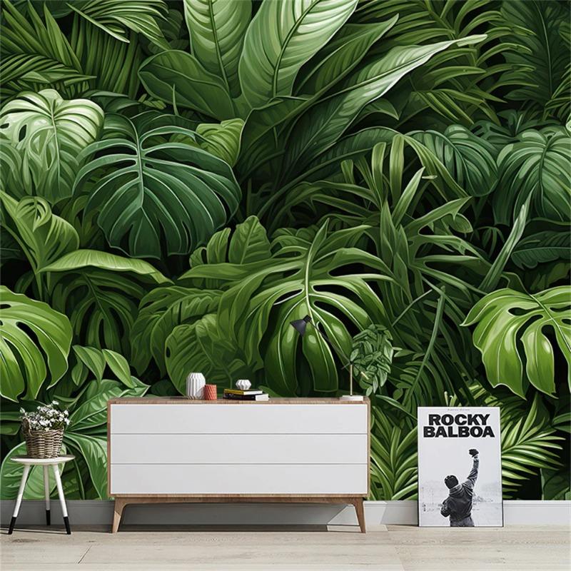 Тропический лесной лес Зеленые обои с растениями Фон Деревня Природа Обои Домашнее украшение