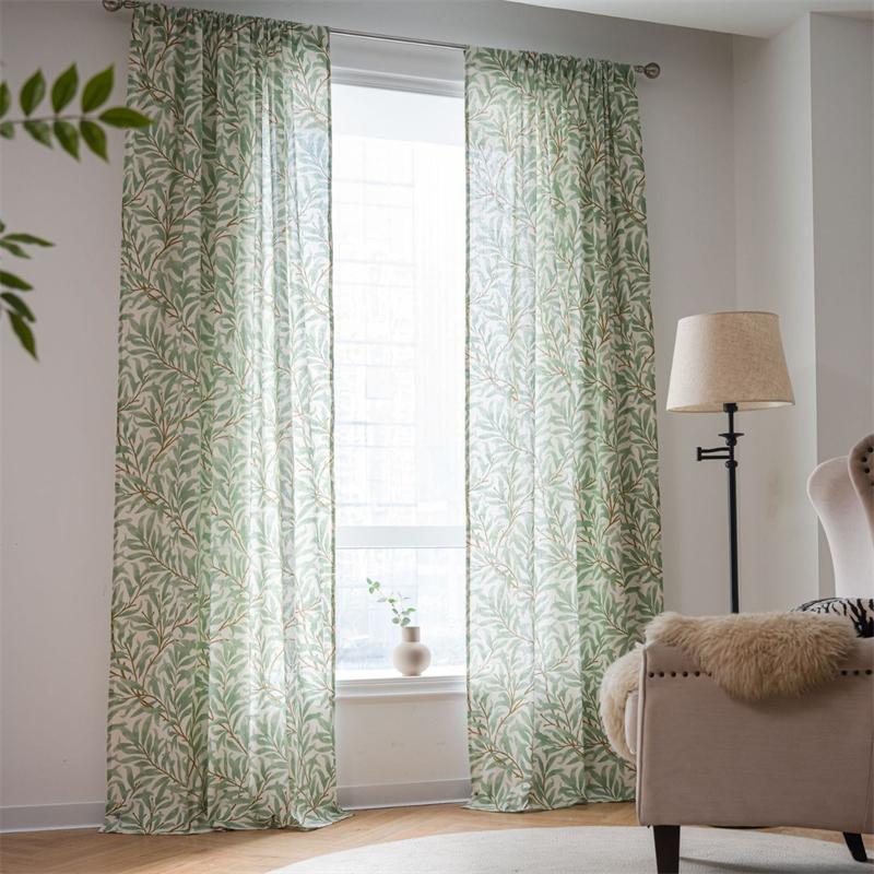 Шторы с принтом в виде ботанических листьев — полупрозрачные шторы для кухни и эркерные занавески | Готовые светофильтрующие занавески (Карман для крючков/удочек)