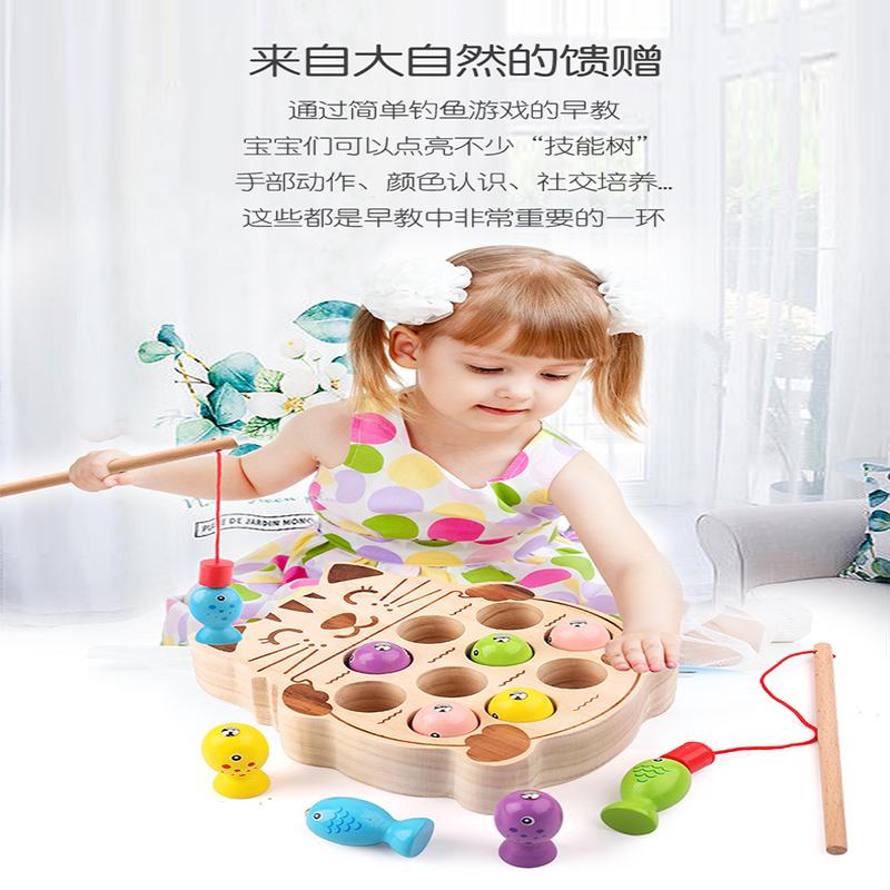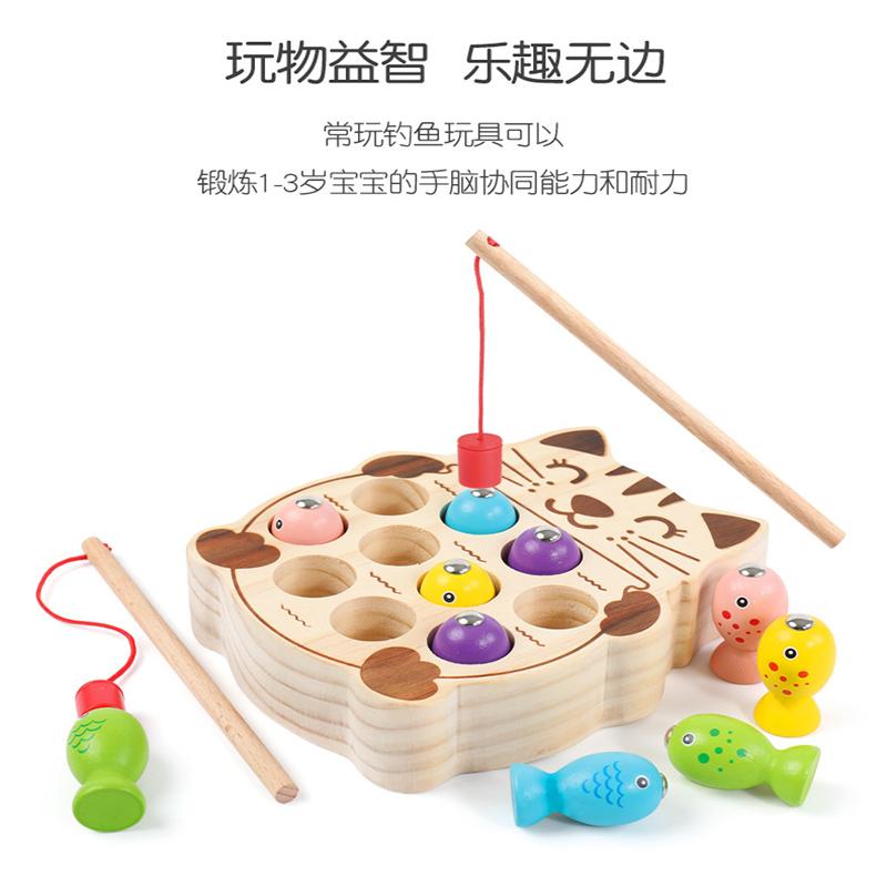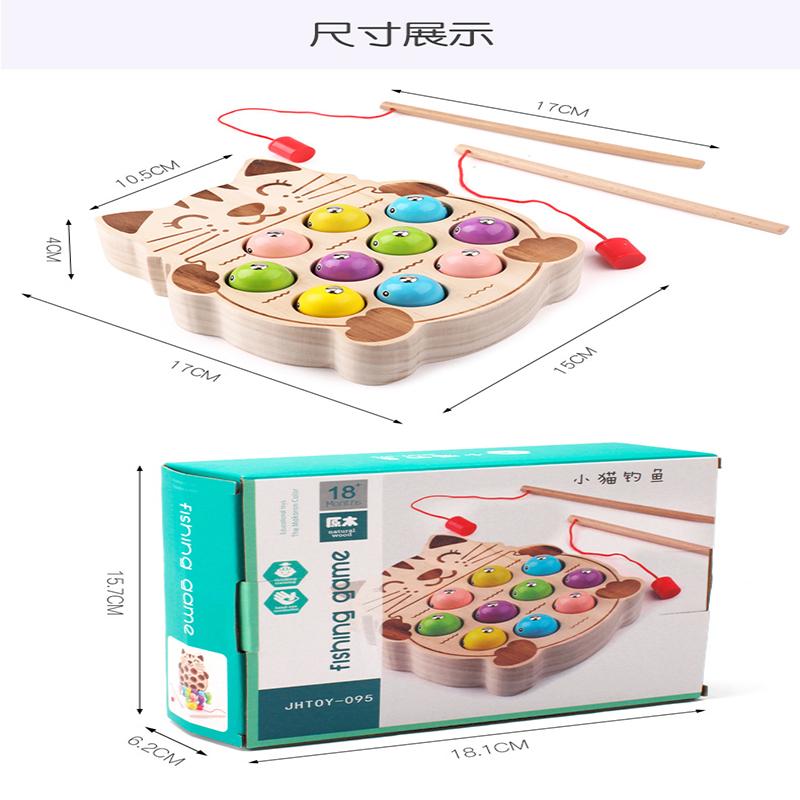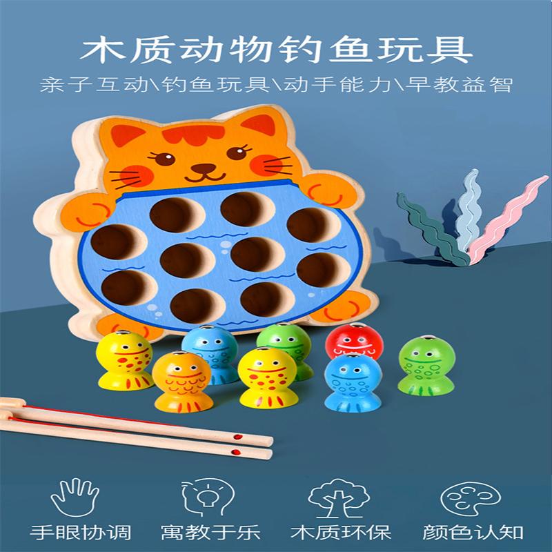 Детское раннее образование Котенок Рыбалка Магнитная удочка для маленьких детей Развитие интеллекта Тренировка ума Деревянные игрушки
