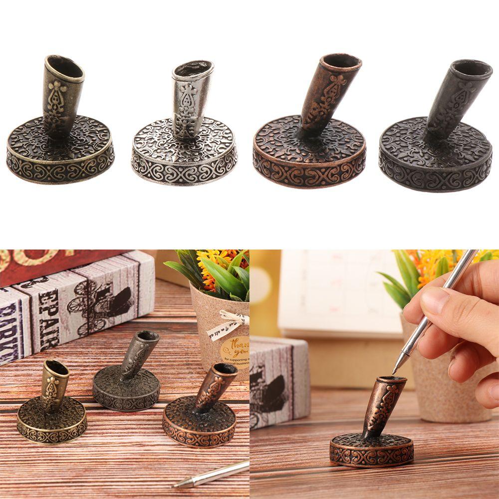 Desktop Organizer Writing Accessories Round Base Vintage Metal Pen Clips European Style Pen Holder — купить товар онлайн с бесплатной доставкой до всему миру!