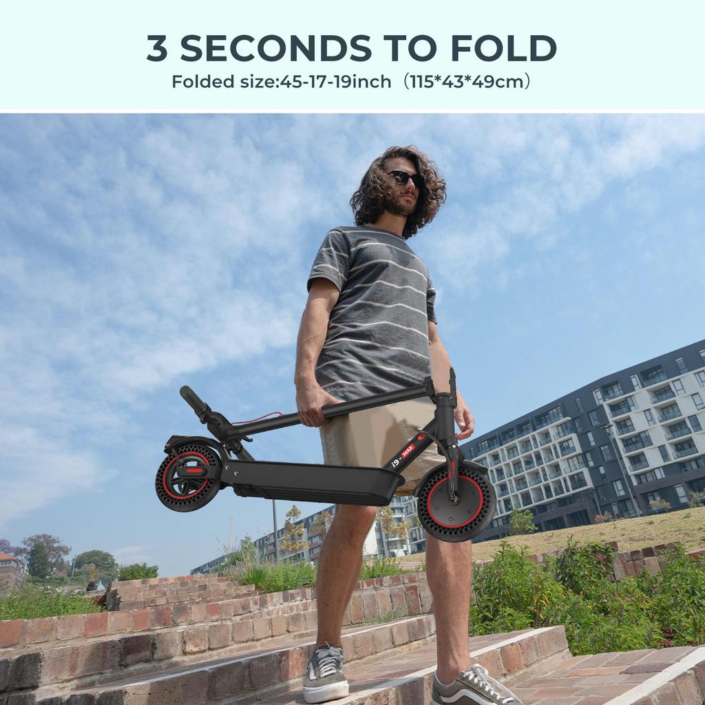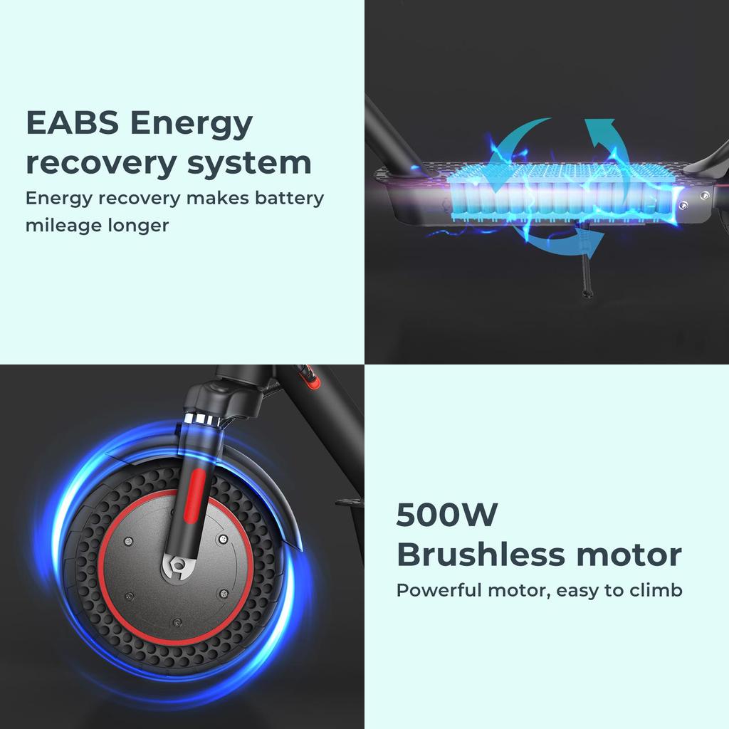 iScooter i9 Max оснащен высокоскоростным двигателем мощностью 500 Вт, который отличается мощностью и долговечностью, обеспечивая запас хода до 35 км во вспомогательном режиме, поэтому вы можете путешествовать без беспокойства.