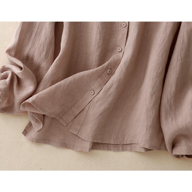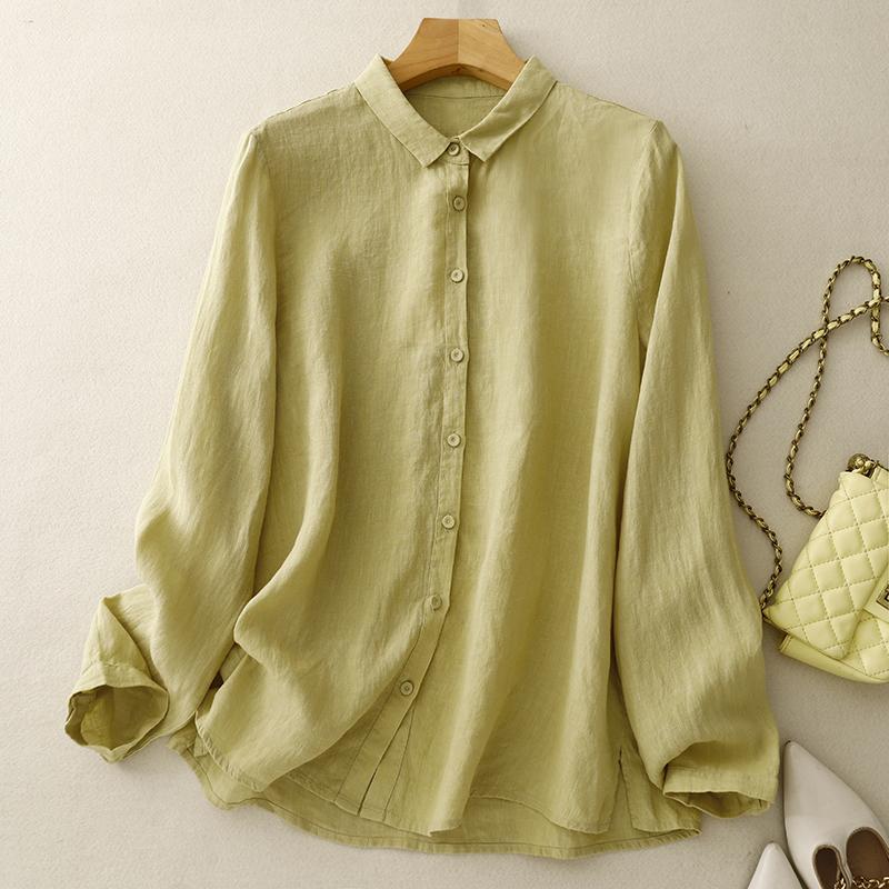 DIMANAF 2025 Большой размер Новая летняя блузка Льняная однотонная рубашка Женская свободная рубашка с длинным рукавом Повседневные топы футболки