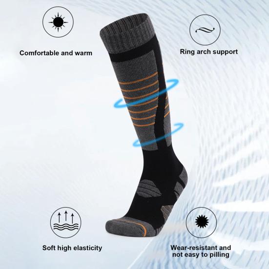 Прочный дизайн: Эти спортивные носки, изготовленные из смеси хлопка, полиэстера и спандекса, отличаются прочностью, воздухопроницаемостью и впитыванием пота.. Износостойкий материал обеспечивает долговечность, что делает их надежным выбором для всех ваших зимних приключений.