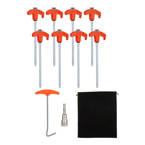 Благодаря простому процессу установки с использованием беспроводной дрели или ударного шуруповёрта, установка лагеря становится быстрой и лёгкой, что позволяет вам сосредоточиться на путешествии.. Высокопрочный винтовой тип подходит для различных ландшафтов, добавляя стиль вашему оборудованию, а также повышая безопасность и комфорт за счет снижения риска споткнуться.