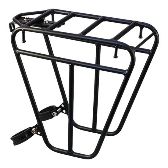 Представляем багажник для перевозки велосипедов — прочный и универсальный багажник, рассчитанный на длительную надежность и производительность.. Изготовленный из прочной стали, этот передний багажник рассчитан на большие нагрузки и суровые условия езды, что делает его идеальным для туристических поездок, езды по дорогам и поездок на работу..