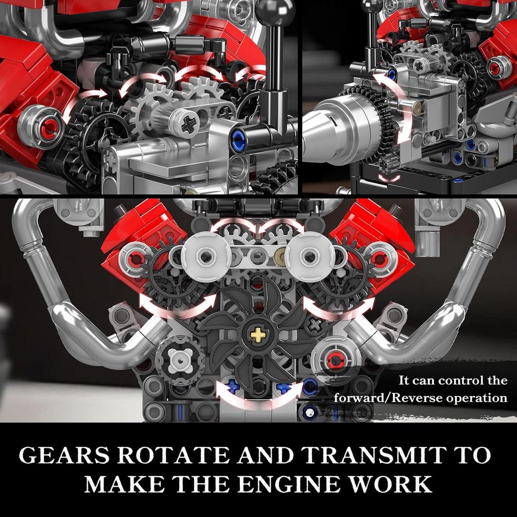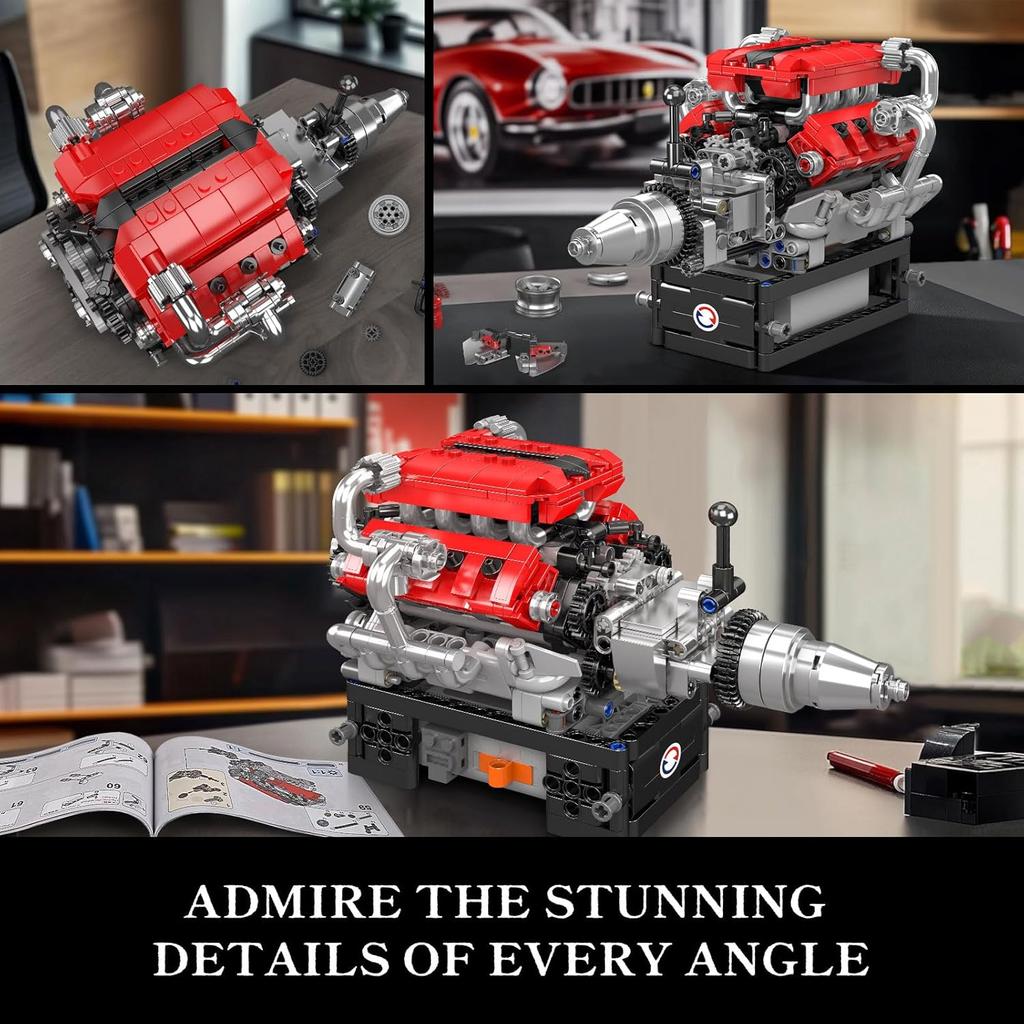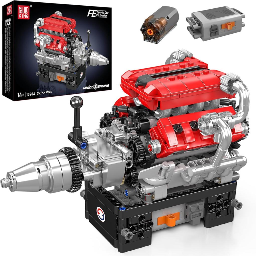 MOULD KING 10204 Технический игрушечный автомобильный двигатель The Motorzied FE Sports Car V8 Engine Building Block Brick Kids Christmas Gift