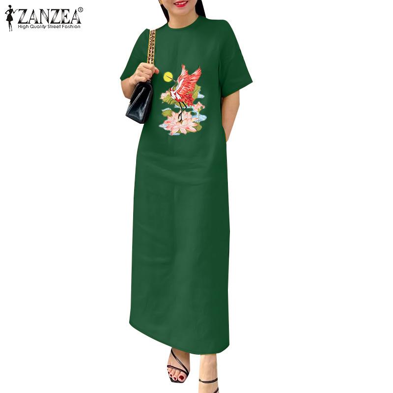 ZANZEA Женское повседневное платье с круглым вырезом и коротким рукавом — купить товар онлайн с бесплатной доставкой до всему миру!