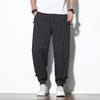 Летние мужские шаровары в полоску с пряжкой, дышащие хлопковые льняные брюки-карандаш, повседневные шаровары с пряжкой