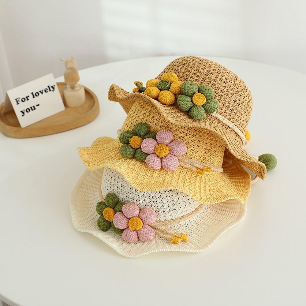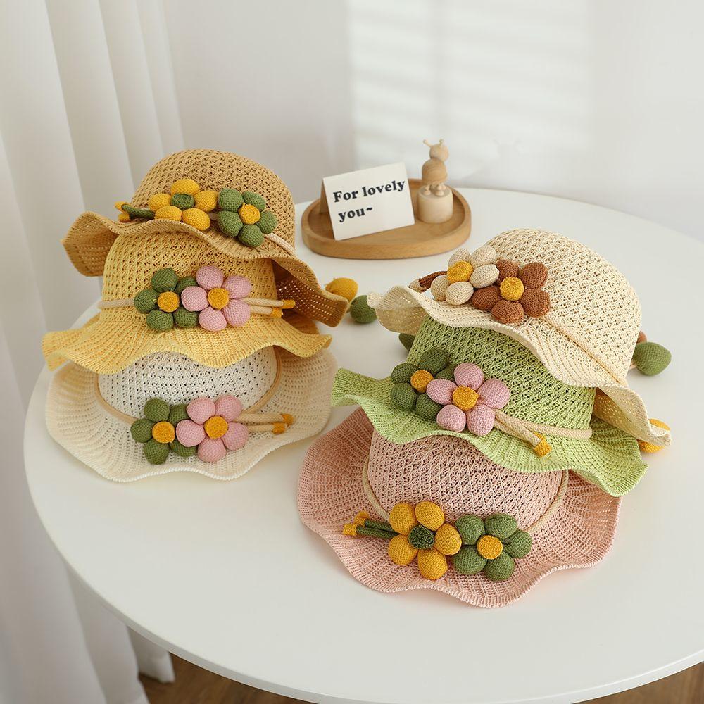 Детская солнцезащитная шляпа, летняя шляпа для мальчиков и девочек, шляпа от солнца, шляпа-трава, дышащая шляпа с волнистым краем, шляпа рыбака, солнцезащитная сетка