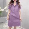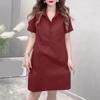 ZANZEA Женское повседневное однотонное платье с коротким рукавом и отложным воротником