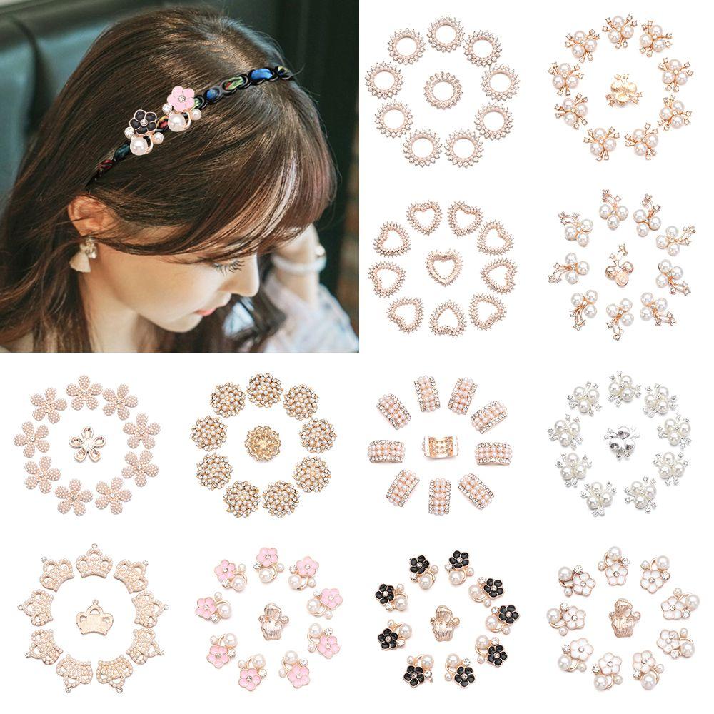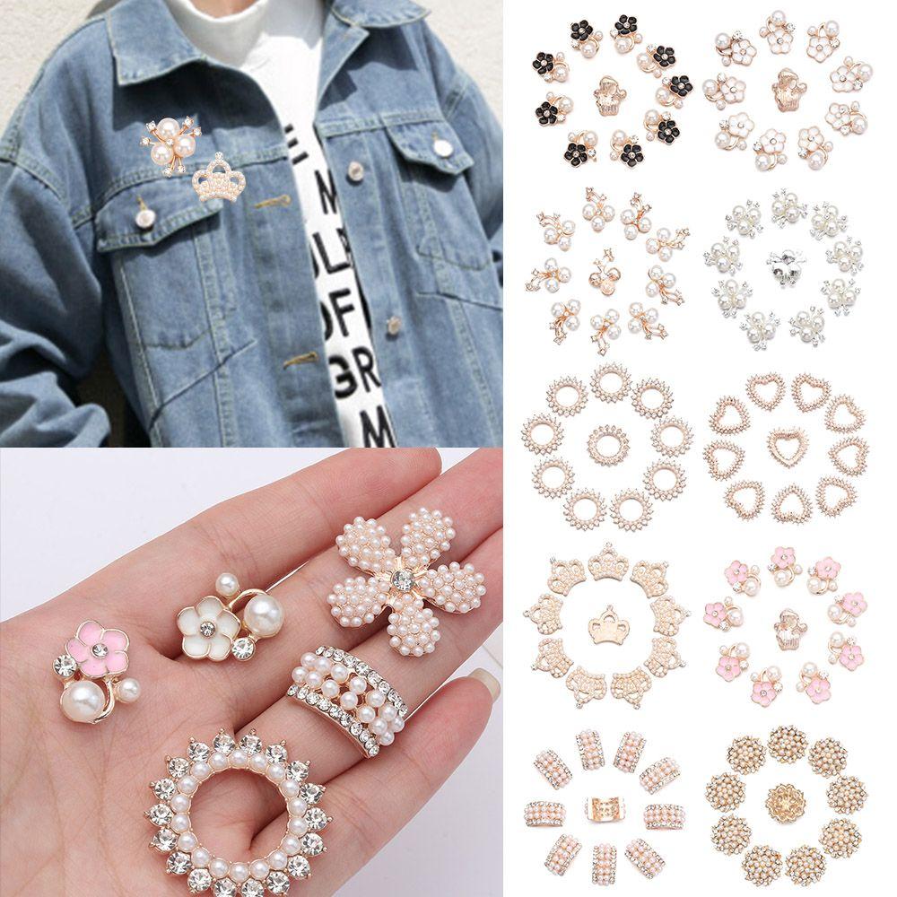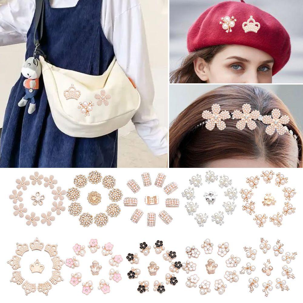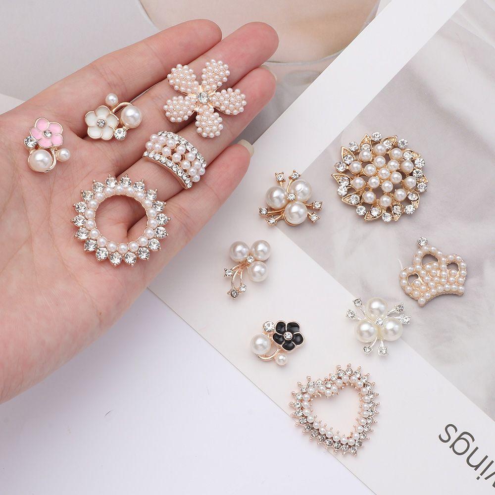 10 шт сверкающих хрустальных перламутровых пуговиц в форме цветка, жемчужные шпильки для волос, зажимы для волос, пуговицы со стразами