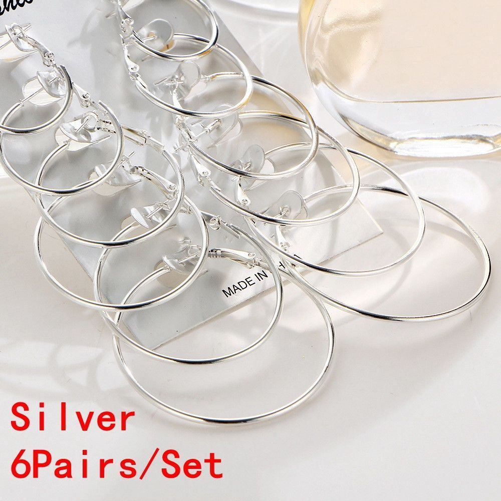 6 пар/набор Серебряные Вечерние Модные Висячие Серьги-гвоздики Пирсинг Ювелирные изделия Серьги-кольца Набор