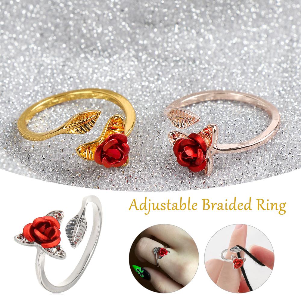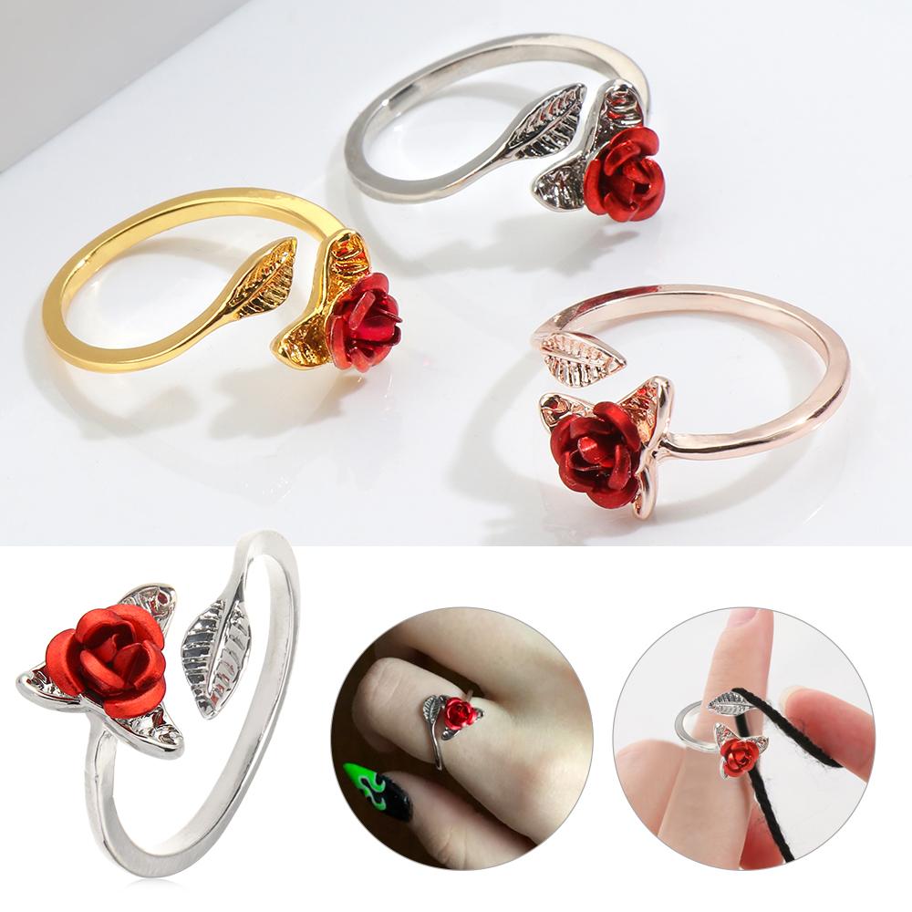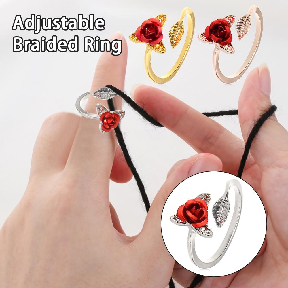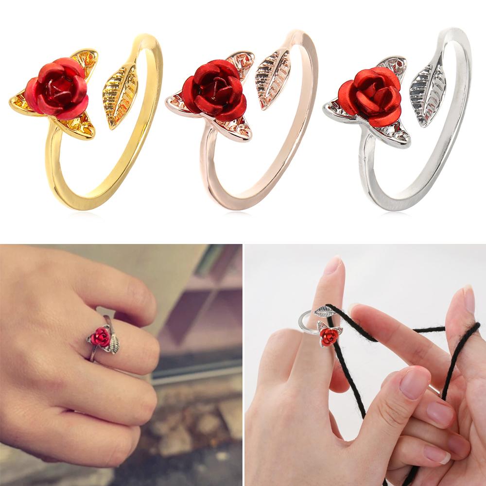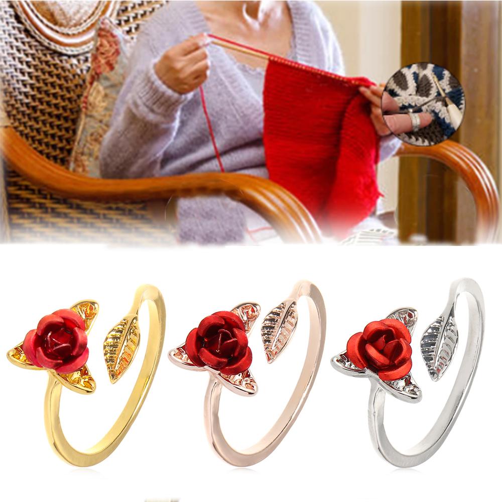 Открытие Направляющие для пряжи Носить на палец Вязание Кольцо Форма цветка Роза Шитье Крючком Петля