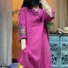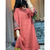Женское летнее винтажное вышитое хлопковое льняное платье в этническом стиле с юбкой на пуговицах и семью рукавами