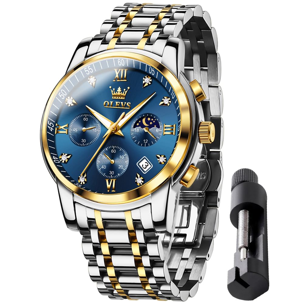 OLEVS часы для мужчин кварцевые фазы Луны таймер из нержавеющей стали простые модные водонепроницаемые светящиеся часы с датой для мужчин синие
