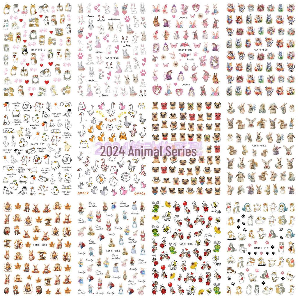 2025 милые наклейки для ногтей с изображением кошек и животных