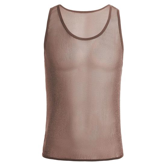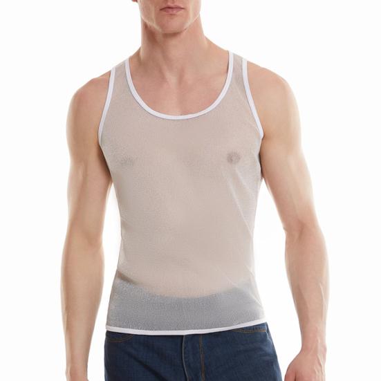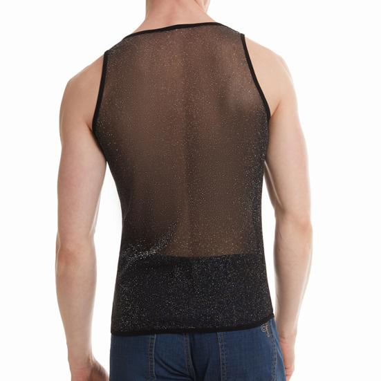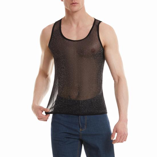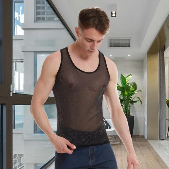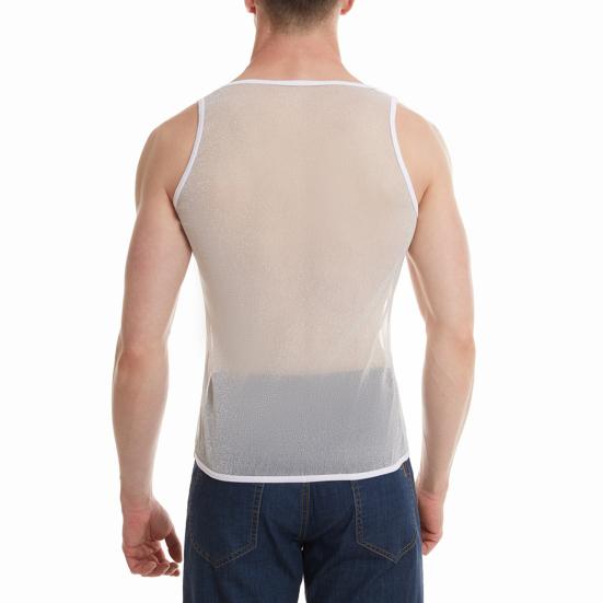 Конструкция из однотонной сетки: Этот мужской жилет выполнен из однотонной сетки, которая одновременно повседневна и удобна, а прозрачный элемент прекрасно подчеркивает вашу фигуру, сохраняя при этом скромность.