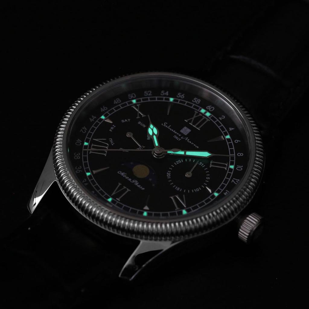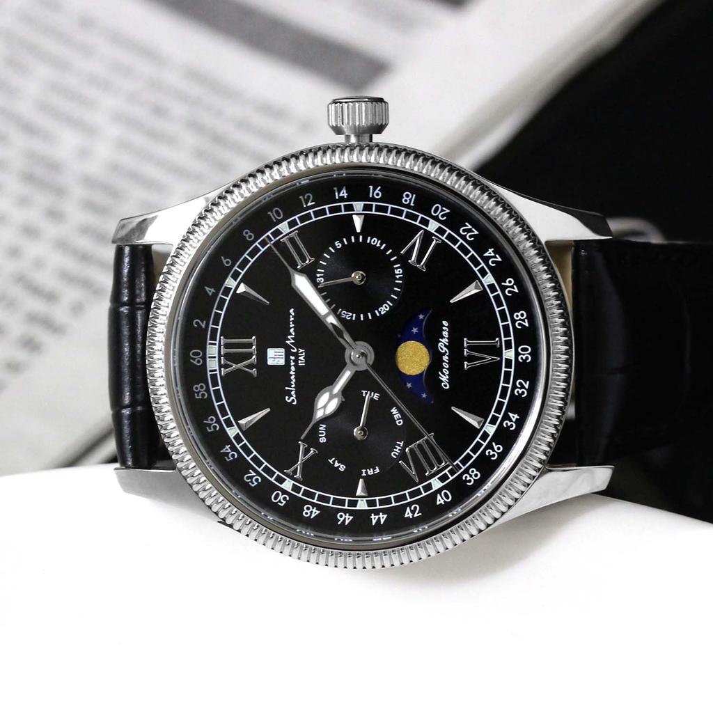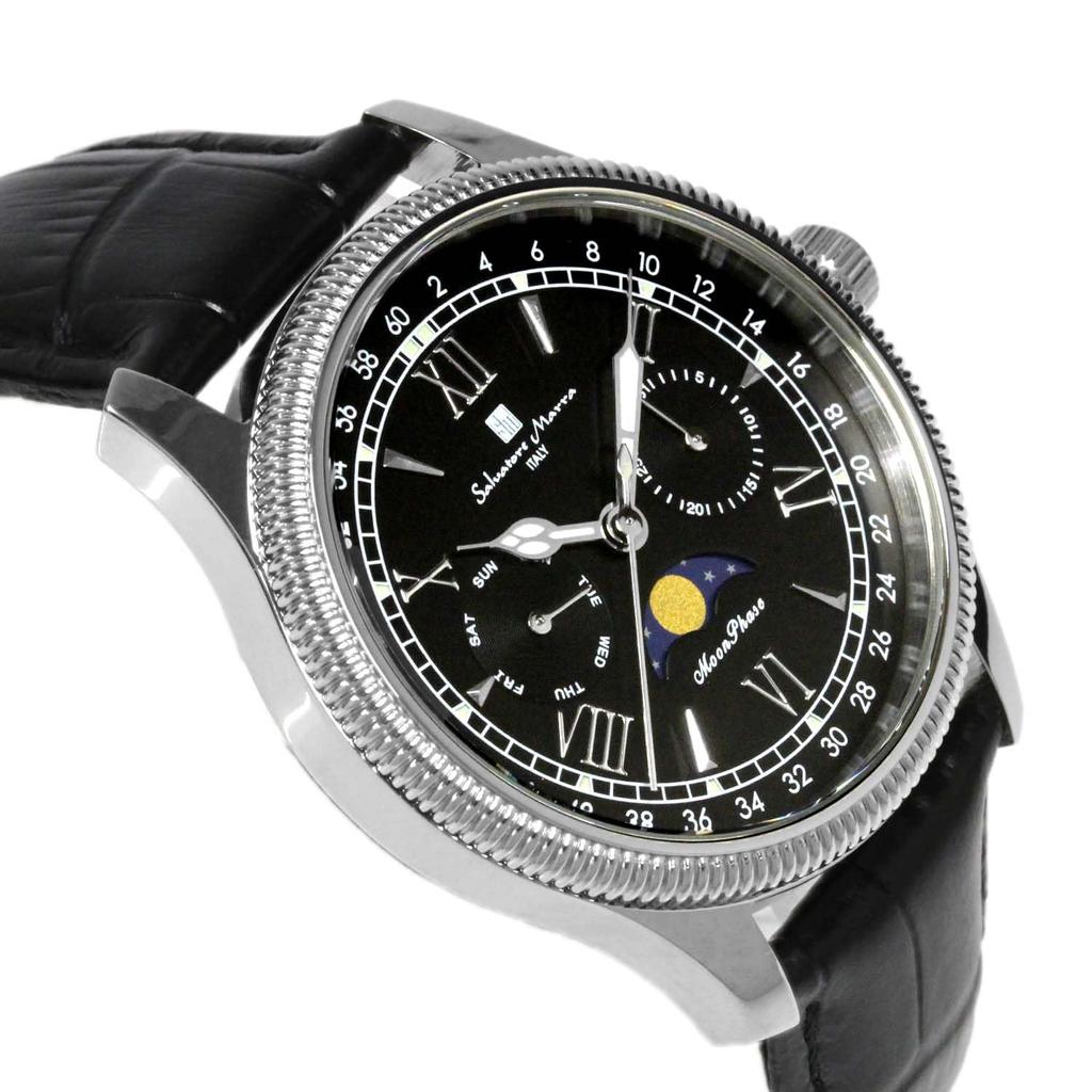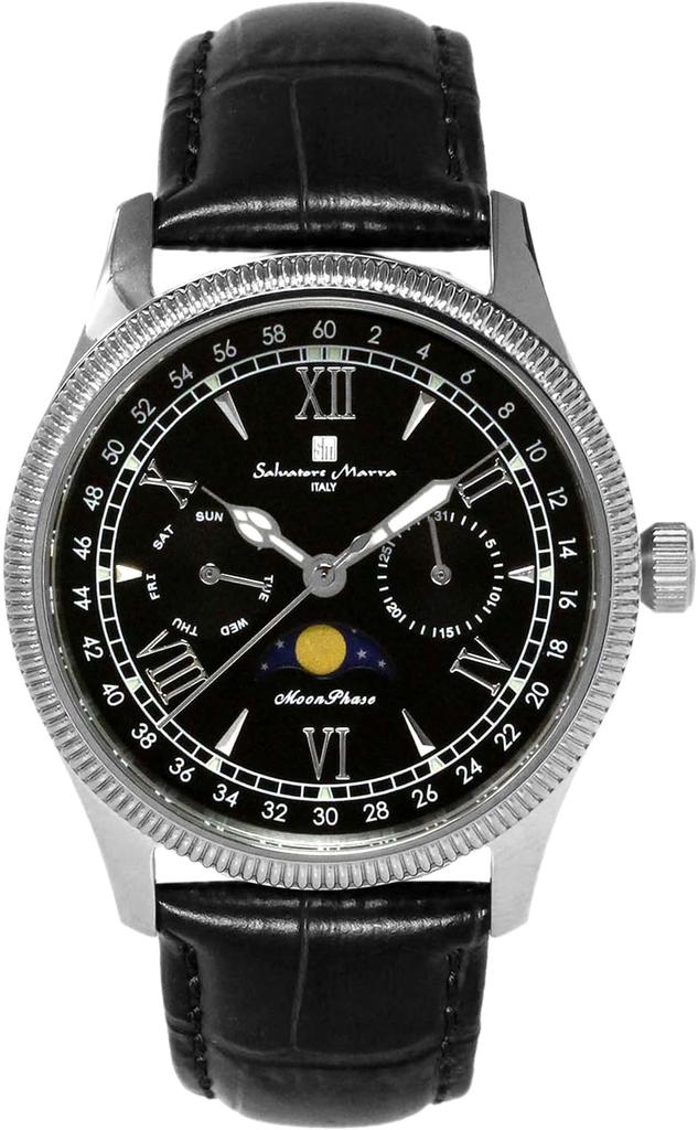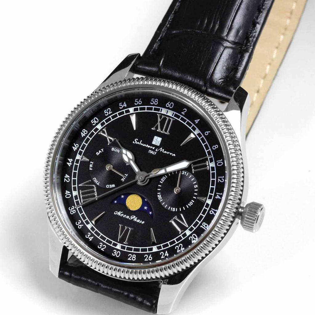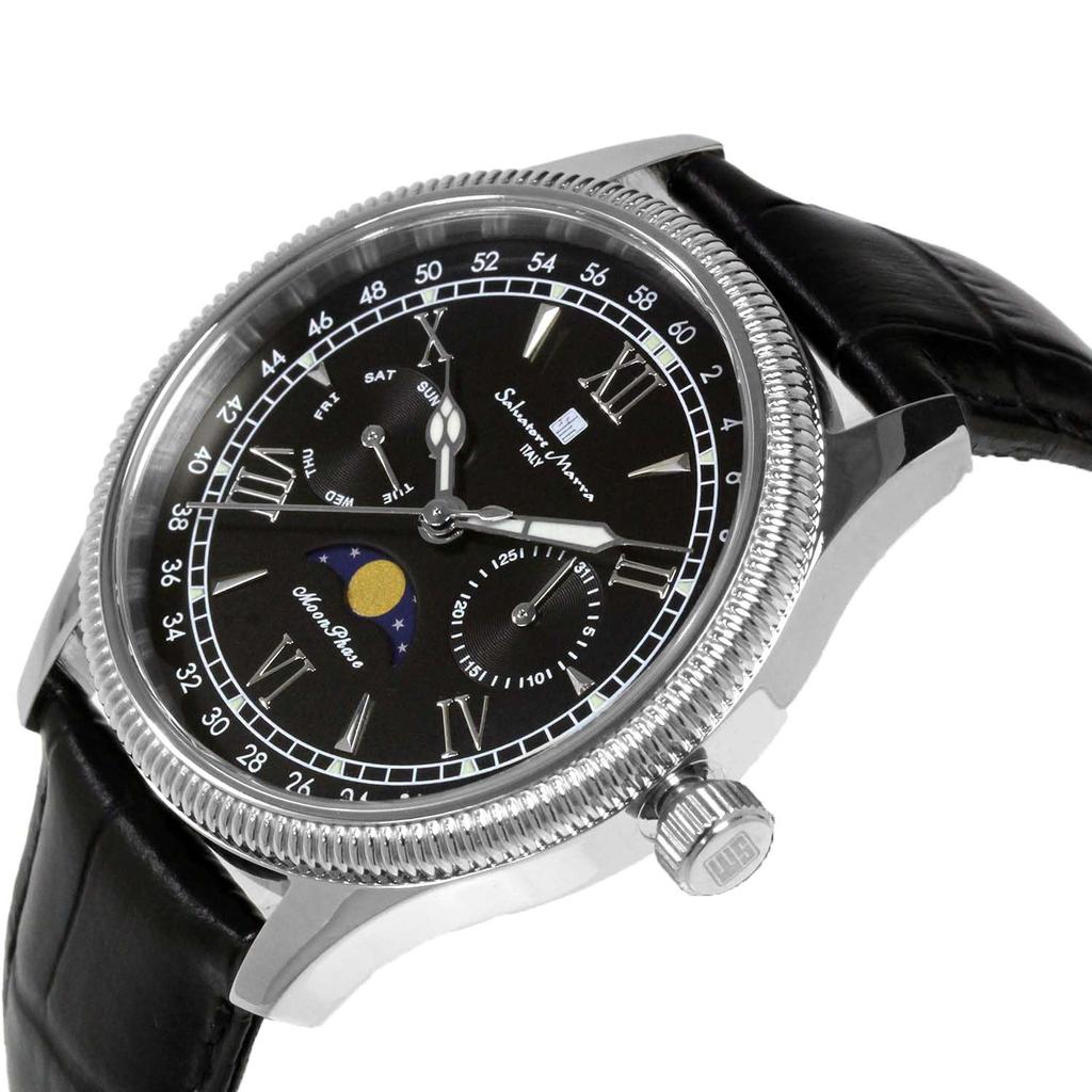 Часы Moon Phase Multi Calendar 5 ATM Water Resistant Business Formal Leather Belt Limited Model Silver Black [Salvatore Mara] Men's SM24110-SSBK