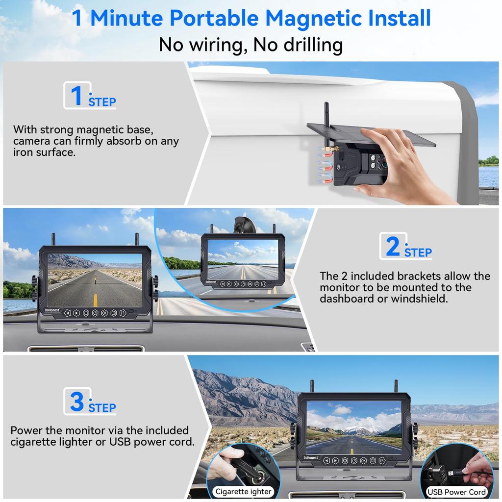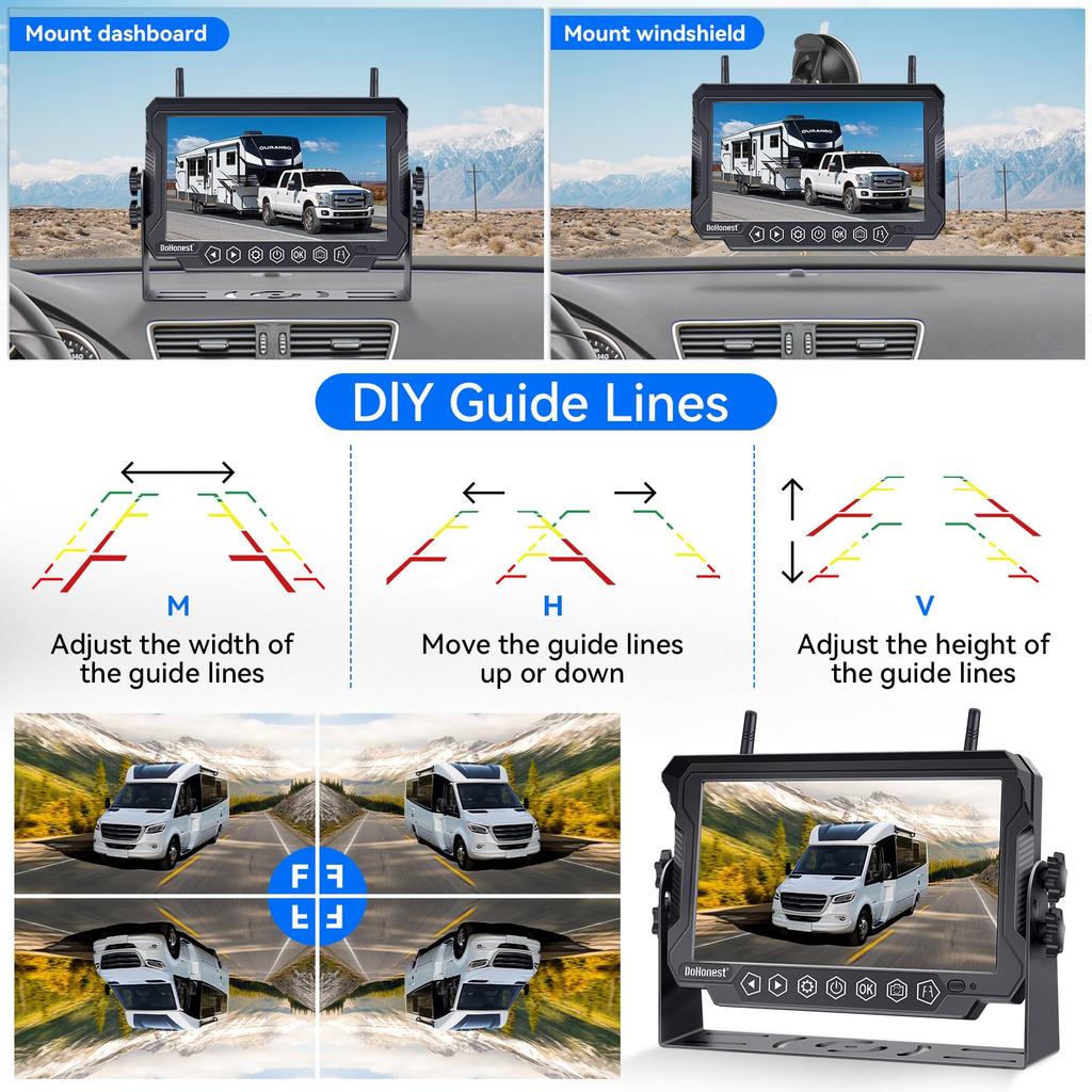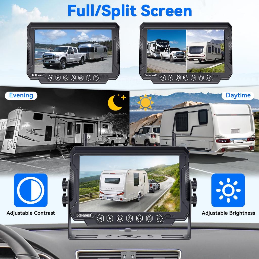 FHD 1080P Digital Wireless Dual Backup Camera 7'' DVR Monitor Kit Split Screen for Trailer/RV/Truck/Camper Rear/Side/Front View Camera Night Vision IP